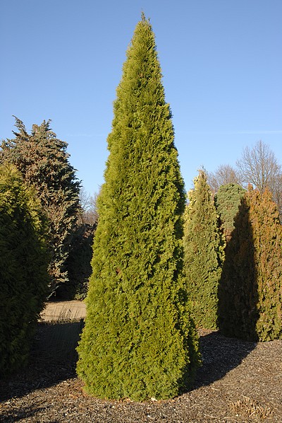 Thuja occidentalis 'Emerald', zaznamenal Petr Horáček, 2006.12.08Popis: habitus (Botanická zahrada Praha Troja) (A11)