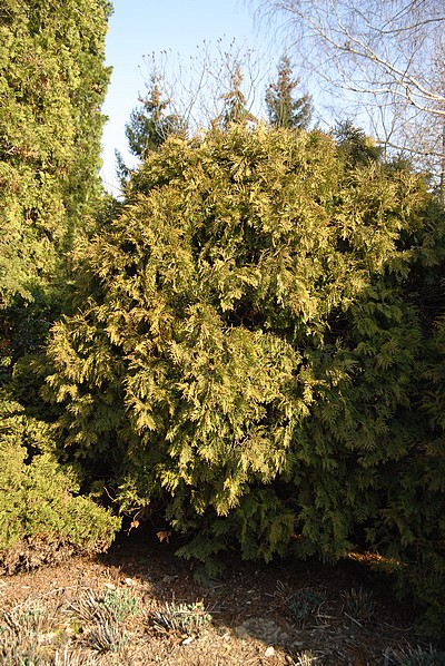 Thuja occidentalis 'Little Champion', zaznamenal Petr Horáček, 2007.03.13Popis: habitus (Dendrologická zahrada Průhonice) (D1)