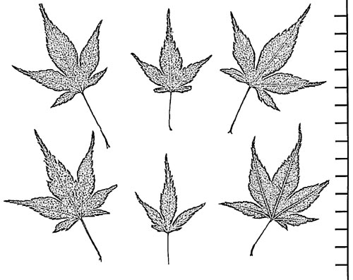 Acer palmatum 'Sekka yatsubusa', zaznamenal Petr Horáček, 1998Popis: scan (Botanická zahrada Praha Troja) (A11)