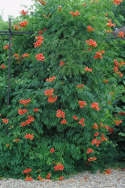 Campsis ×tagliabuana 'Guilfoylei', zaznamenal Petr Horáček, 2005.07.20Popis: habitus (Botanická zahrada Praha Troja) (A11)