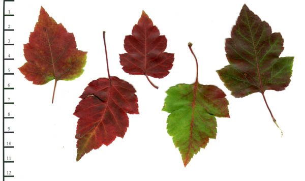Crataegus phaenopyrum, zaznamenal Petr Horáček, 2005.10.13Popis: barevný scan, podzimní zbarvení (Botanická zahrada Praha Troja) (A11)