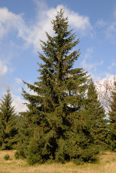 Picea abies, zaznamenal Petr Horáček, 2007.10.08Popis: habitus (pod vrchem Jelení stráň, Jizerské hory) (F49b)