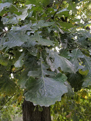 Quercus macrocarpa, zaznamenal Petr Horáček, 2004.10.04Popis: listy (L171) (Královská obora - Stromovka, Praha) (C6)